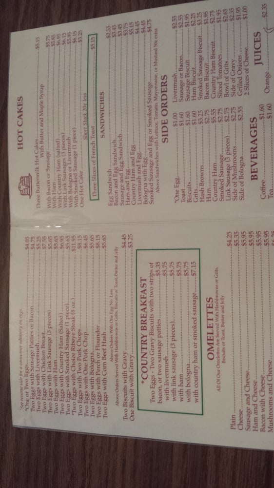 Start your day with the Country Breakfast, featuring two eggs served with three pieces of link sausage for just $5.75. For pancake lovers, the Hot Cakes are a must-try—fluffy buttermilk hotcakes served with your choice of country ham or smoked sausage.